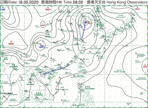 由於預料低壓槽會在廣東沿岸徘徊,所以預計今日(5月19日)尤其初時,大雨機會仍然存在。然而,今早本港有陽光,驟雨亦減少得很快。說好了的低壓槽究竟往哪裡去?