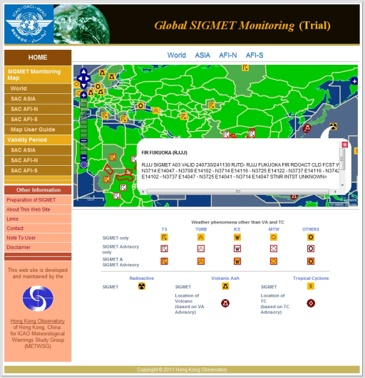 Figure 1 A sample layout of the Global SIGMET Monitoring website. |