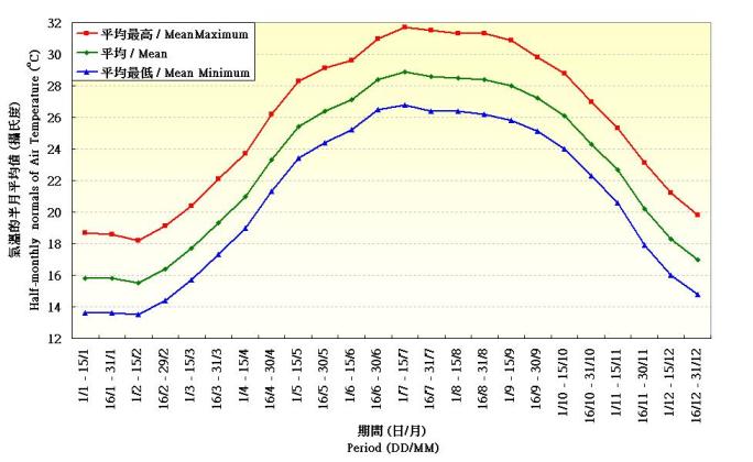 Figure 1. Half-monthly normals of Air Temperature recorded at the Hong Kong Observatory(1961-1990)