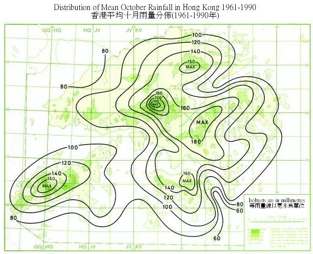 Distribution Map of Mean October Rainfall in Hong Kong (1961-1990)