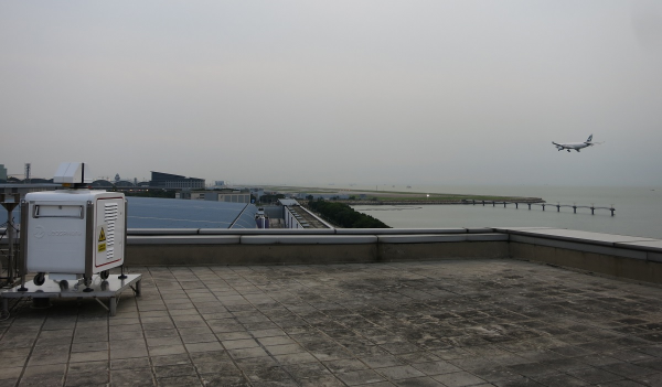 Figure 3 A short-range LIDAR (equipment in white to the left) performing scans near the arrival and departure corridors of the Hong Kong International Airport.