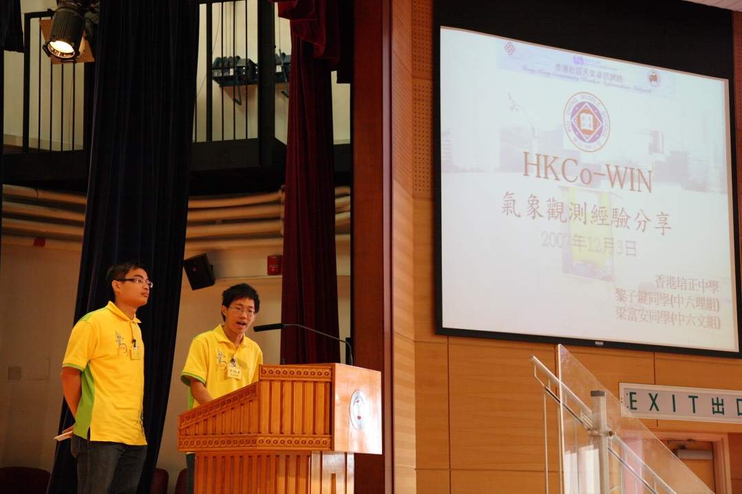 Two years ago, with its limited resources, the Observatory stepped up its efforts to improve weather services for the public through close cooperation with schools and various local communities to organize a weather information network. The aim of the network is to gather weather information from automatic weather stations of its school and community members, carry out data quality assurance and make available the weather information on the Internet. This initiative was well received by the public. It creates a win-win situation for all partners, generates a sense of ownership among the players and helps assure the long-term sustainability and development of the programme. After about two years time and through the collaborative effort of the Observatory, the Department of Applied Physics of the Hong Kong Polytechnic University and the Hong Kong Joint-school Meteorological Association, the Hong Kong Community Weather Information Network (HK Co-WIN) was officially opened on 24 August 2007 (Figure 1).