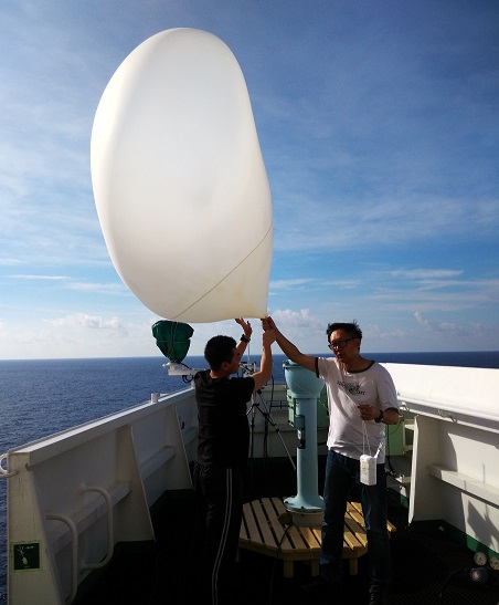 Dr. Lam Hok-yin, Scientific Officer, and Mr. Fung Kwok-chu, Senior Scientific Assistant, went aboard an OOCL container vessel “M.V. OOCL Busan” from 13 to 18 June. During its voyage from Hong Kong to Singapore, seven weather balloons carrying radiosondes were successively launched from a portable upper-air sounding system to collect meteorological data such as air temperature, humidity, wind direction and wind speed in the upper atmosphere over the South China Sea.
