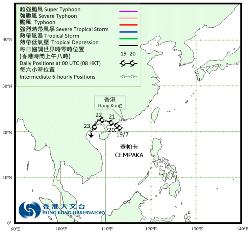 Tropical Cyclones in 2021 > Track and Satellite picture of Typhoon Cempaka (2107)