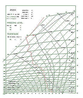 During an upper-air sounding operation, the hydrogen-filled balloon carried a radiosonde and a radar reflector. Measurements of pressure, temperature and humidity taken by sensors on the radiosonde were transmitted to the ground station by radiowave. At the same time, the radar tracked the movement of the radar reflector and determined the range, azimuth and elevation of the reflector, allowing computation of winds. These measurements could reach an altitude of 30 kilometres before the balloon burst. The upper-air data obtained is normally plotted on a Tephigram (Figure 5) for use by meteorologists.