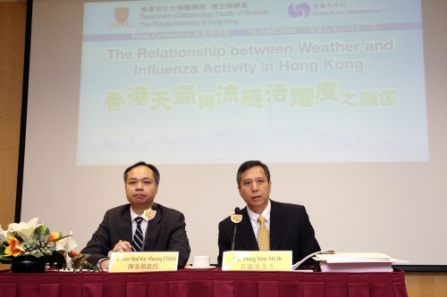 香港中文大学(中大)医学院微生物学系及香港天文台今天(六月十八日)联合公布「香港天气与流感活跃度之关系」的研究结果。研究分析了1997年至2006年经沙田威尔斯亲王医院实验室确诊的甲型及乙型流感入院个案,以及香港天文台在沙田区录得的天气数据。
