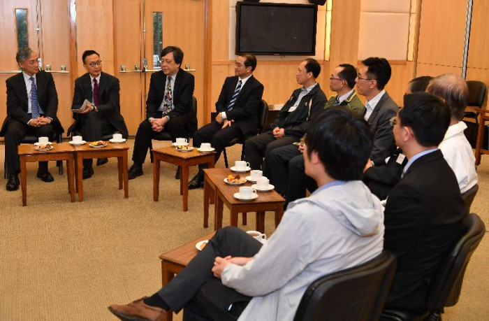 图五 公务员事务局局长张云正(左二)今日(四月七日)与香港天文台各职系的员工代表茶敍,勉励他们继续追求卓越,进一步提升服务。