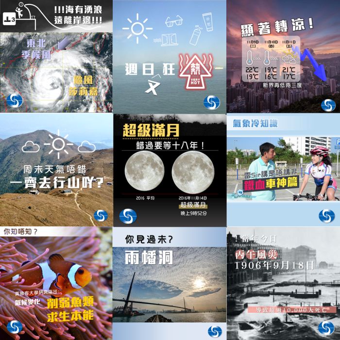香港天文台今天(2016 年 11 月 30 日)推出「今日提提你」新服务,以简洁图像及文字,透过社交媒体平台和「我的天文台」手机应用程式,让市民可以便捷地分享天气和气候新知、天文现象、百变云图、历史天气等资讯。「今日提提你」信息每晚会透过「我的天文台」及天文台在Twitter、微博和微信的帐户发送。