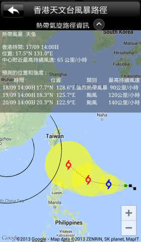 香港天文台今天 (2013 年 10 月 11 日) 于 Android 平台上推出流动应用程式「我的天文台」版本 3.1,加入新功能「我的天气报告」(图一),及加强「风暴路径」的用户介面(图二)。