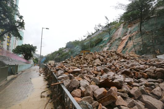 受到华南沿岸地区的低压槽及活跃西南气流所带来的持续有雨天气影响,二零一三年五月本港天气远较正常阴暗及多雨。本月的总日照时间为90.7小时,只有正常的百分之65。二零一三年五月录得的雨量为509.3毫米,较正常数值的304.7毫米多约百分之67,其中约百分之45为五月二十二日的一场暴雨所引致。本年至今累积雨量为898.5毫米,较同期正常数值640.7毫米多约百分之40。 ![]() 雷达回波图像显示在2013年5月22日上午3时54分,大雨及强烈雷暴正横过香港 ![]() 秀茂坪在2013年5月22日发生严重山泥倾泻 (图片由「苹果日报」提供) |