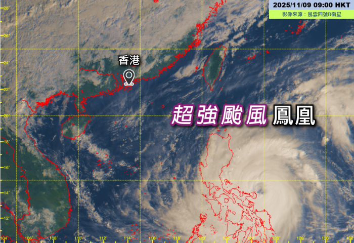圖一 本港時間11月9日上午9時的衛星雲圖